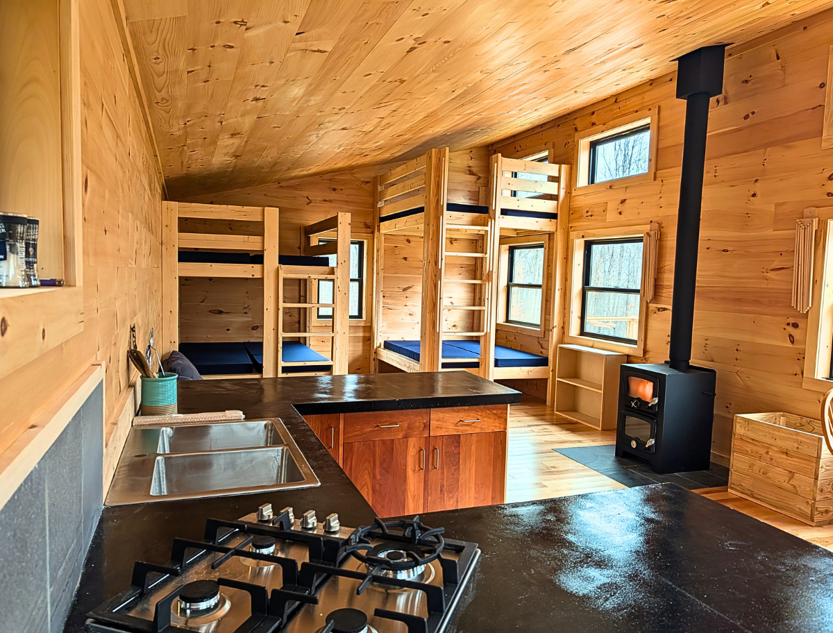 Hunger Mountain Hut is open year-round and located on Worcester Mountain Farm in Worcester, Vermont. It is nestled at the base of the Worcester Mountain Range, a 1/2 mile uphill from the Minister Brook Hut. The hut includes a wood-fired sauna and offers endless opportunities for epic adventures, quiet reflection. The land has several miles of hiking, mountain biking and ski trails. Additionally, the Worcester Mountain Farm is home to a holistic wellness practice that provides acupuncture and herbal medicine. Learn more about additional services here. Amenities include: