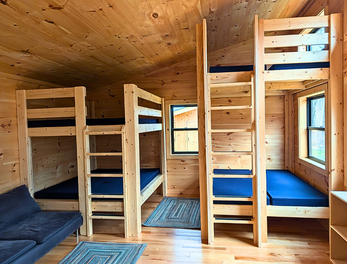 - Sleeps up to 8 guests—4 bunked queen mattresses; no pillows or linens provided. Just bring your sleeping bag.